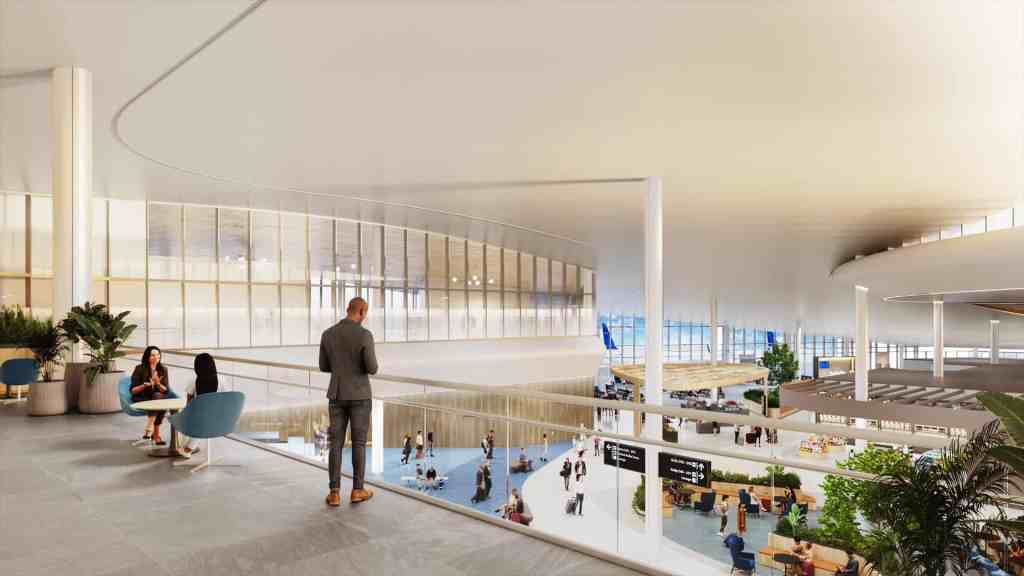 - Glass boarding bridges will provide breathtaking views of the airfield.